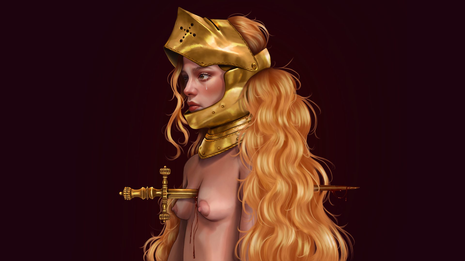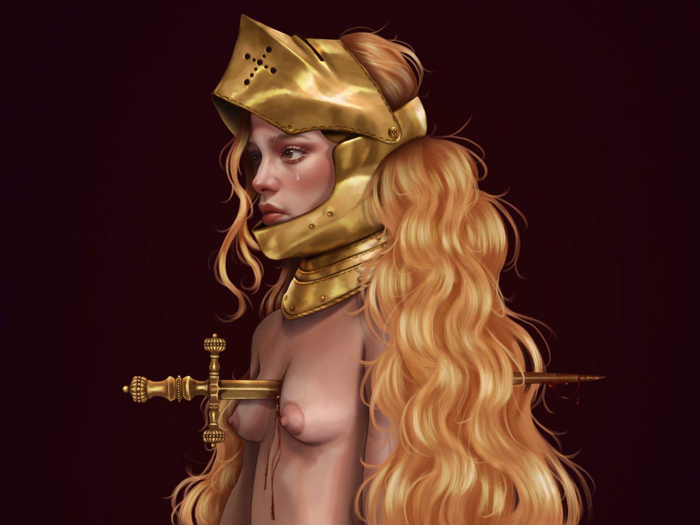 Ova ilustracija istražuje kontrast između racionalnog samoočuvanja i neizbježnosti emocionalne ranjivosti. Portret prikazuje ženu sa zlatnom kacigom koja simbolizira razum, snagu i kontrolu. Njezina divlja kosa izlazi izvan kacige, dok tijelo ostaje nezaštićeno, simbolizirajući otvorenost srca prema boli.