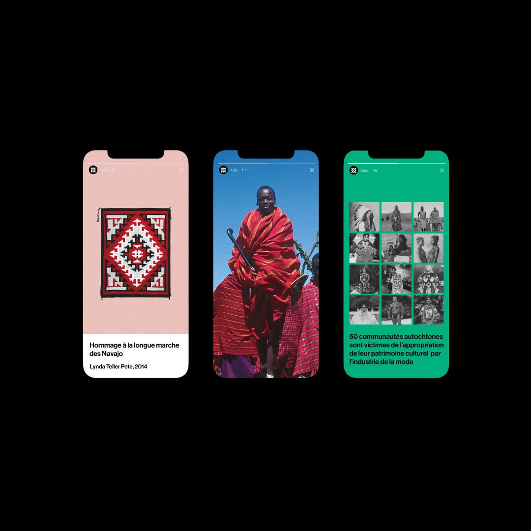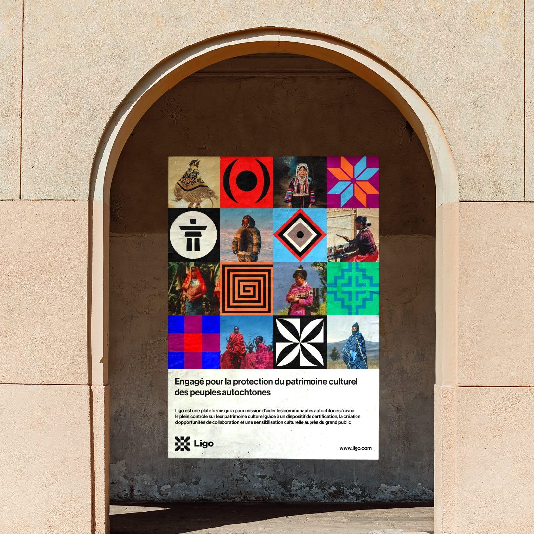 For my thesis project, I imagined Ligo, a marketplace platform born out of the collaboration between UNESCO and WIPO, whose mission is to help indigenous communities combat cultural appropriation by giving them full control over their cultural heritage. To achieve this, it provides indigenous communities with a blockchain-based system to authenticate and protect their creations, create economic and professional opportunities, and raise public awareness of the cultural heritage of indigenous communities. An organization governed by the indigenous community authenticates the product and its creator according to predefined criteria. Once authenticated, it is protected under a collective trademark registered by the community and registered on the blockchain and associated with an NFT, a digital certificate gathering information on its design that guarantees its authenticity.