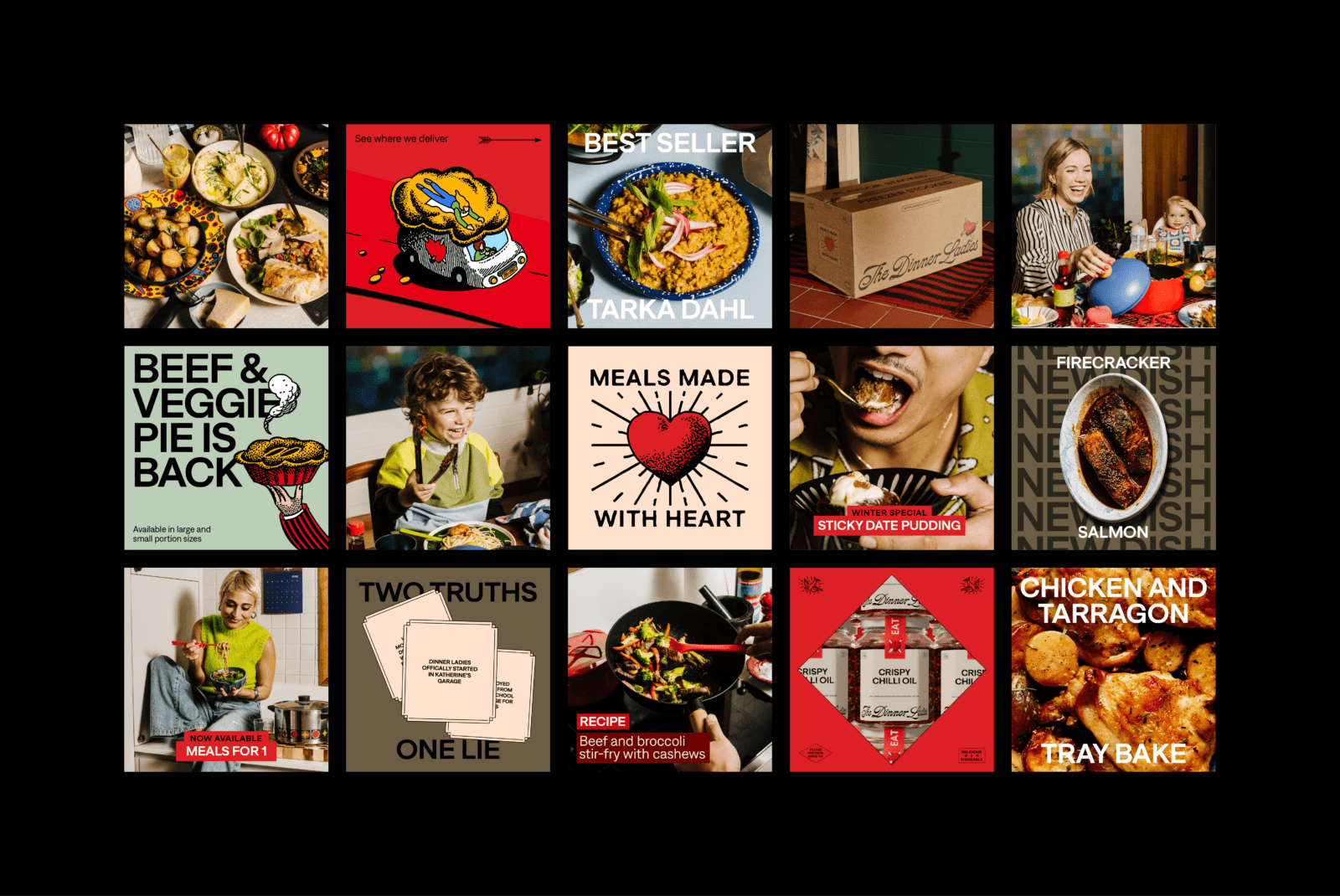 The market for pre-prepared meal delivery is an oversaturated landscape steeped in clichés and same-same messaging that claims to be the most healthy, convenient or delicious dinner time solution. They not only lack a distinct personality but also relatability to their customer — time-poor people who just want simple, genuinely good, homemade meals that help take the pressure off when it’s needed most. This is where The Dinner Ladies shine. A flavour-stacked service that takes care of dinner, so you can focus on doing life.